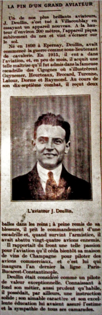 Le 28 mai, dans la soirée, Deullin procédait à Villacoublay aux essais d'un nouvel appareil de chasse de l'aviation militaire. Les